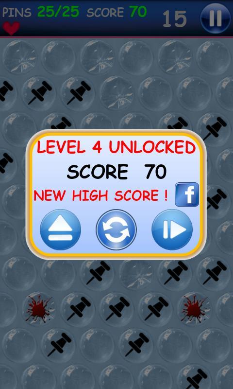 거품을 터뜨린 후에는 일반적인 거품으로 다시 튀어 나오거나 핀으로 바뀝니다. 이기려면 각 레벨에서 필요한 수의 핀 수를 팝업하지 않고 시간이 끝나기 전에 수집하십시오.